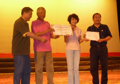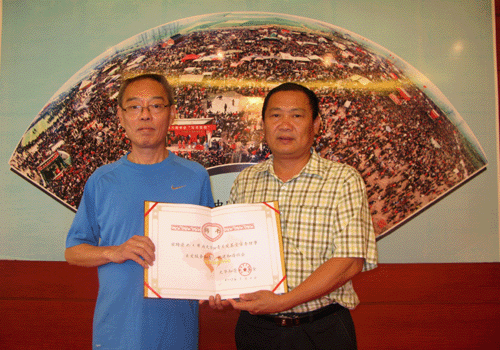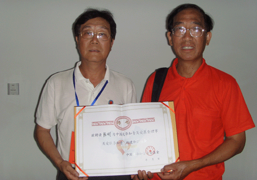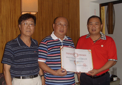 刘季平秘书长和马运昌副秘书长向承明颁发理事证书 |