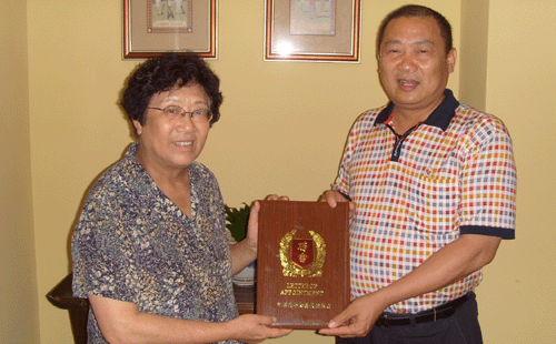 刘季平秘书长和马运昌副秘书长向张韧颁发顾问证书 |