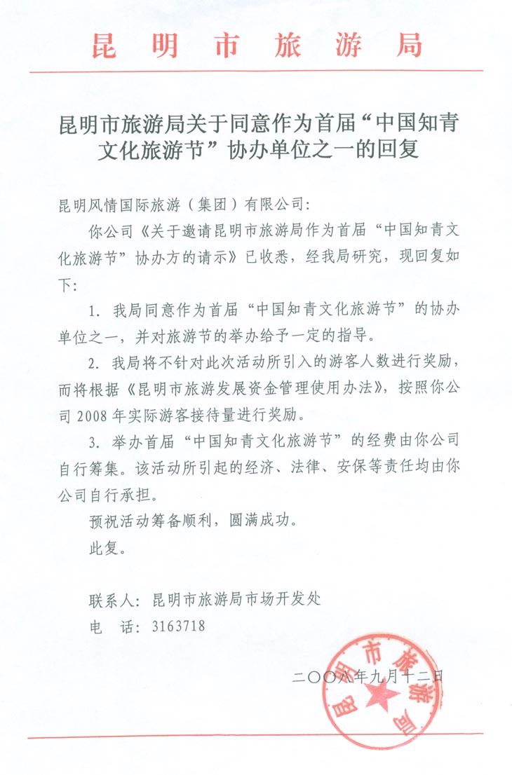 | 云南省旅游局, 昆明市政府、昆明市旅游局回复: | ||