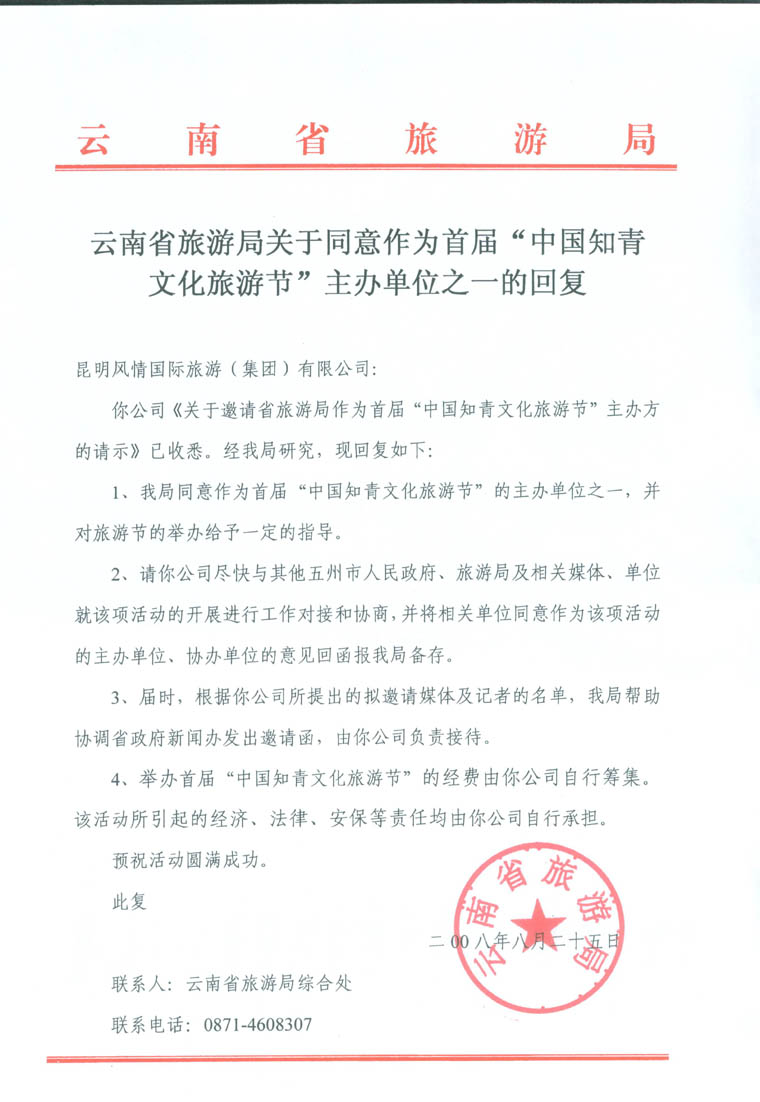 | 承办单位:荣获2007年全国国际社100强的昆明风情国际旅游(集团)有限公司、云南知青俱乐部有限公司 | ||